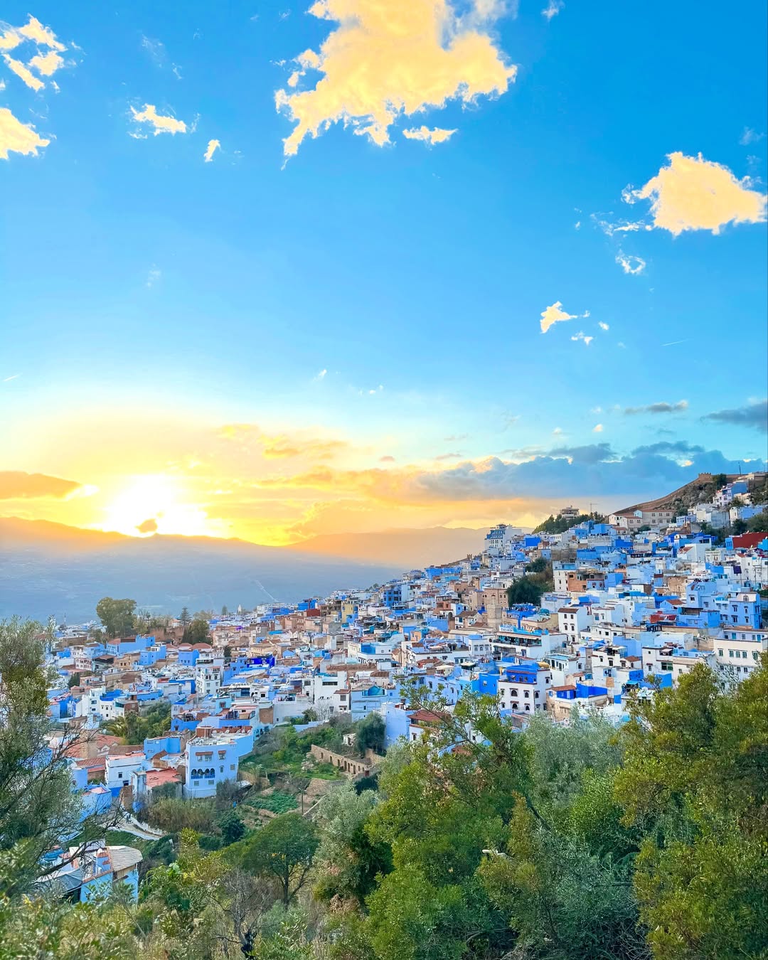 in the Rif Mountains, this charming town is famous for its vibrant blue buildings and relaxed