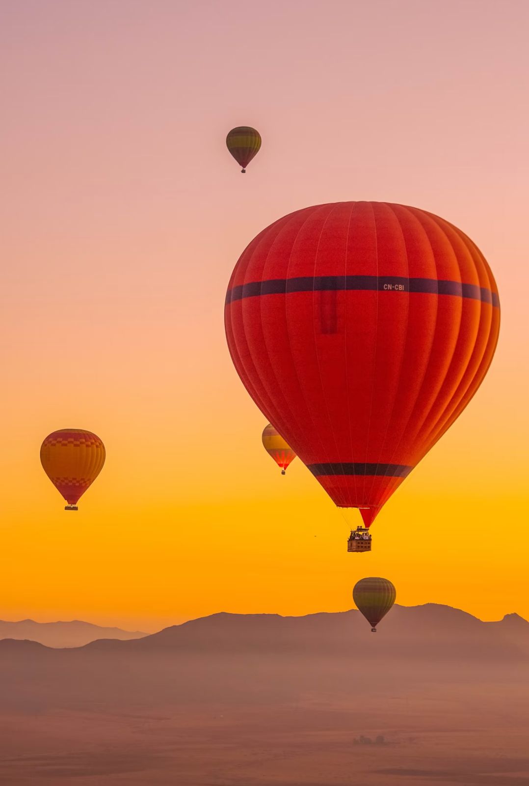 Begin with a magical sunrise hot air balloon ride over the desert and the Atlas Mountains,