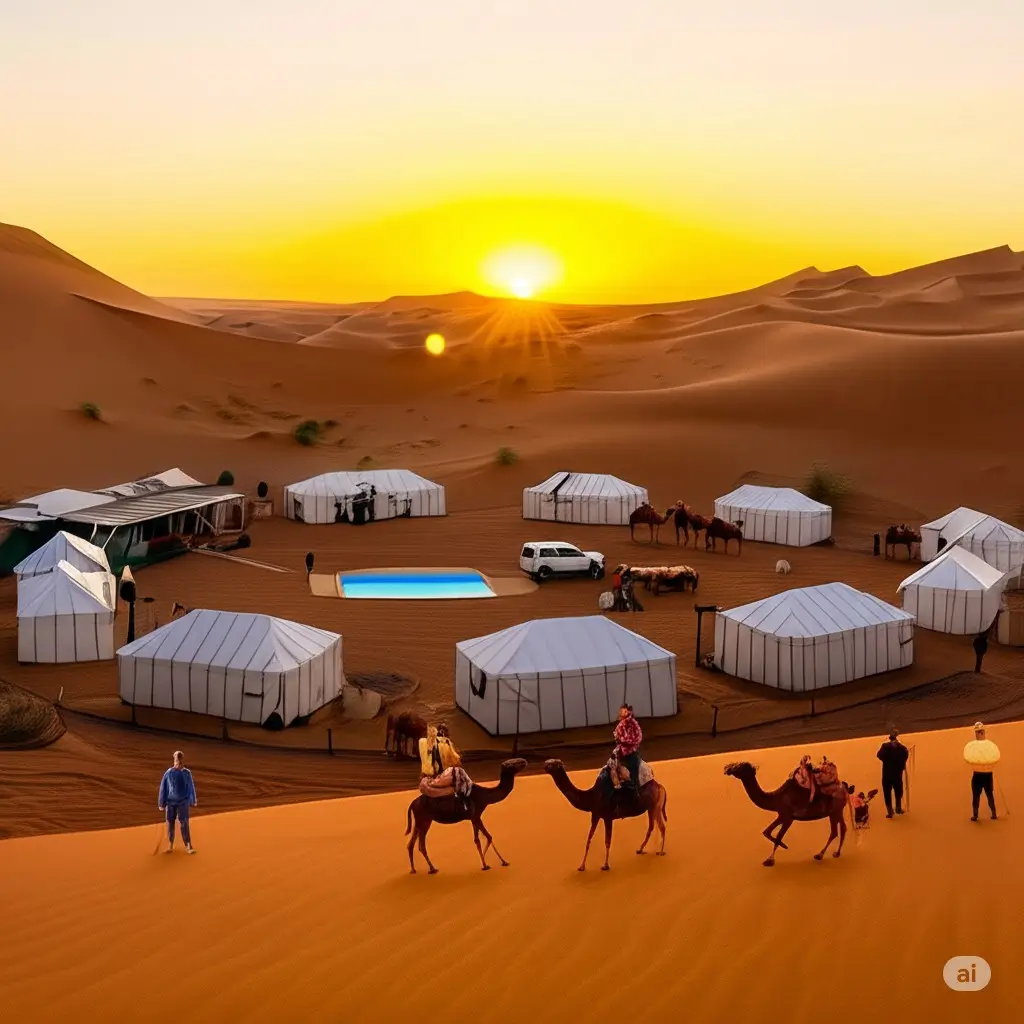 Rise and shine early to witness the breathtaking sunrise over the dunes. leaving the
