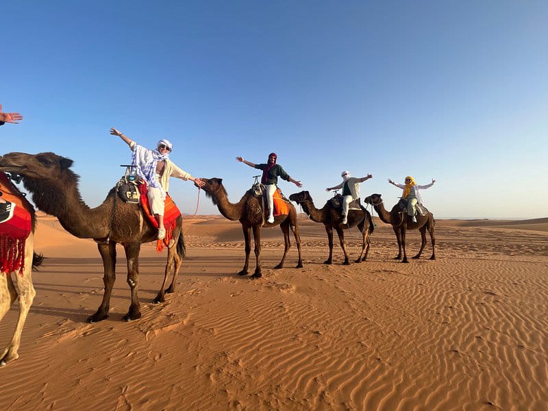 Begin your day with a spectacular sunrise in the desert before returning to Merzouga on camels for a delicious breakfast. Start your journey north through the Tafilalet palm grove, the world’s largest, and witness thousands of palm trees along the road. Proceed to the Ziz Valley, taking in the panoramic view of Aoufous from a high viewpoint. Make a stop in Midelt for lunch and continue through the Cedar Woods, where you may spot monkeys. Visit the city of Ifrane, often referred to as the “Moroccan Switzerland,” with its unique architecture and ski resort. Around 6 PM, arrive in Fes, transfer to the hotel, and conclude your memorable journey
